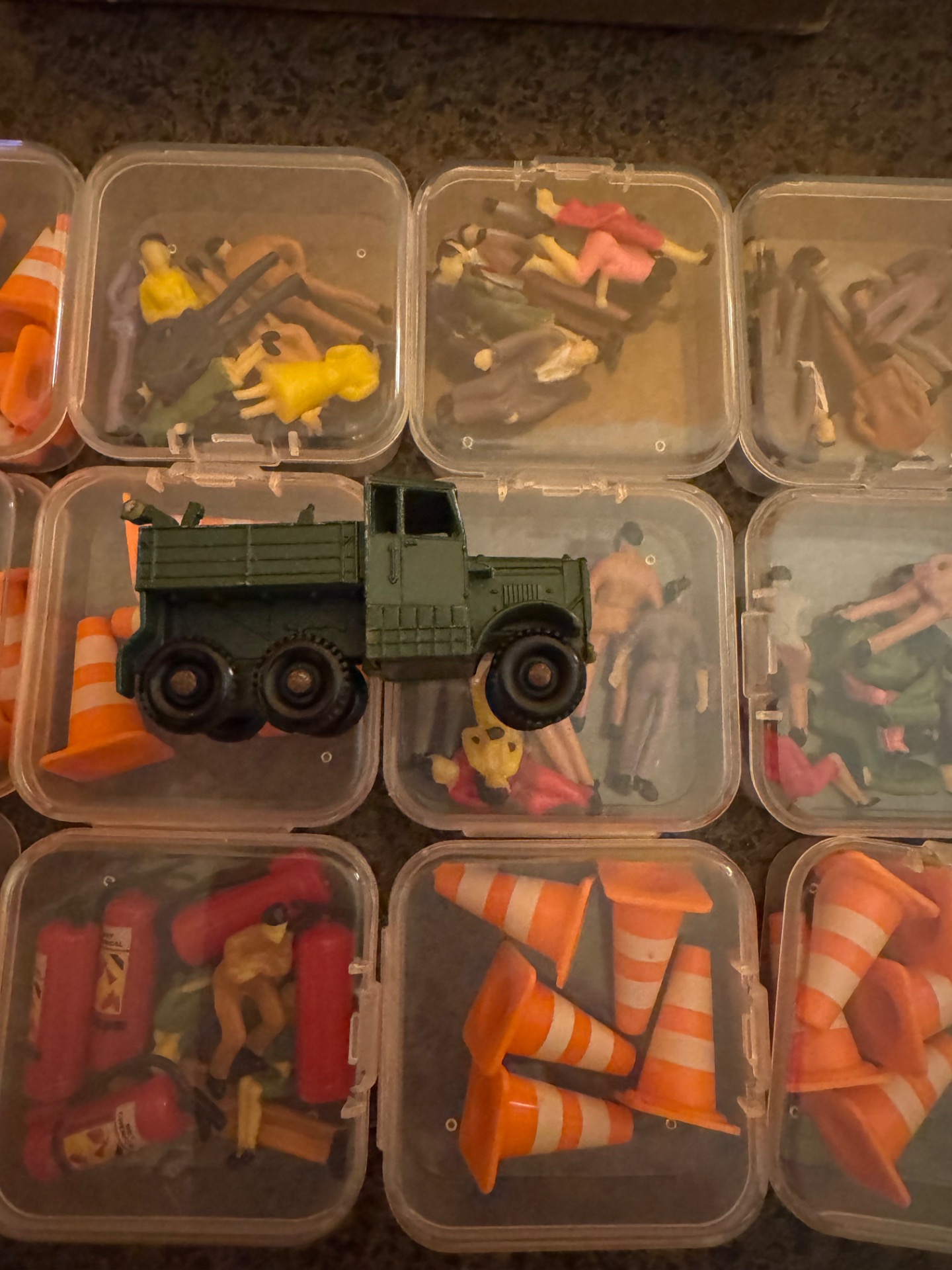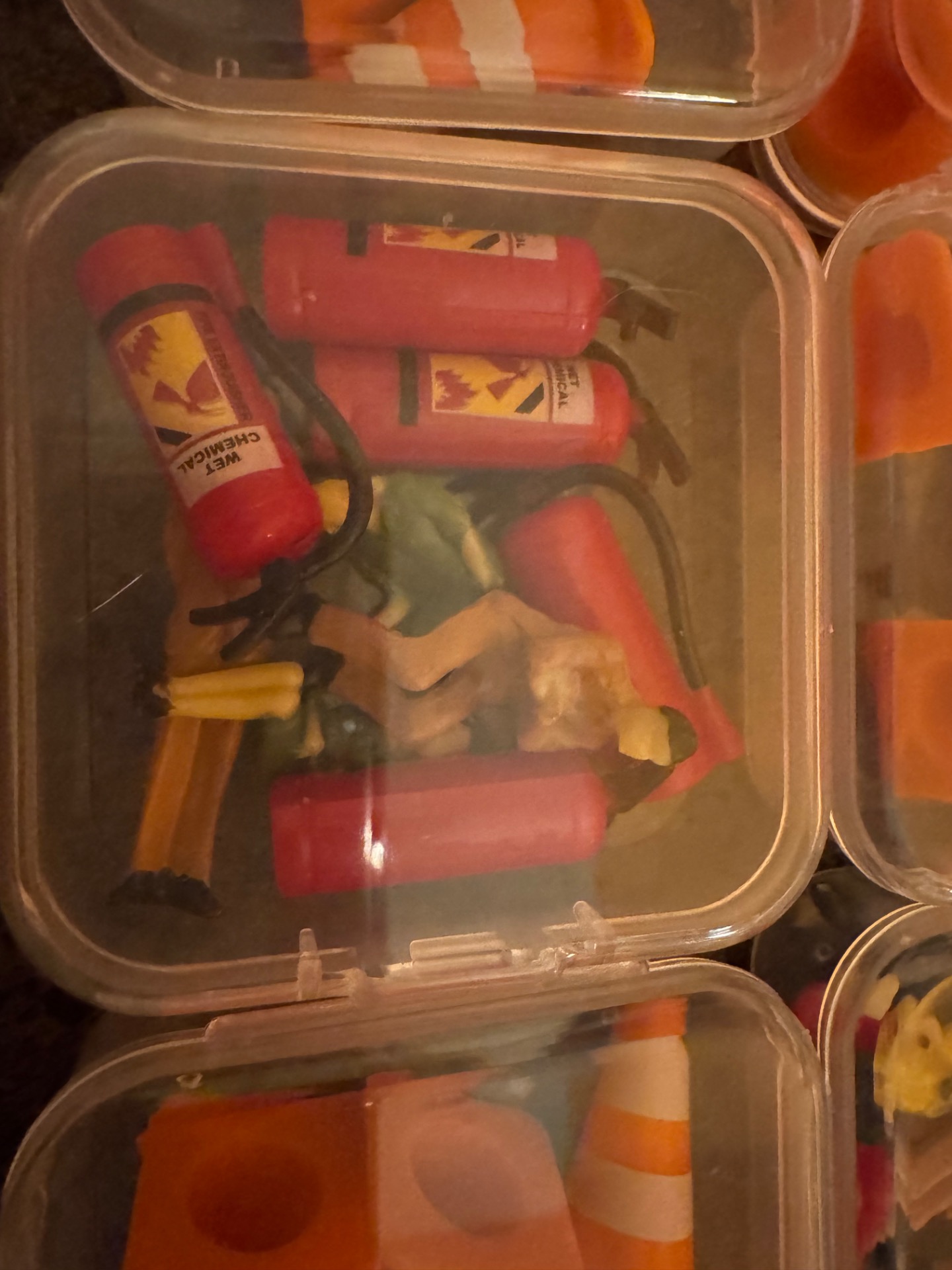 sada figurek kuželu, hasících přístrojů viz foto. Cena za kus s krabičkou 120 Kč
